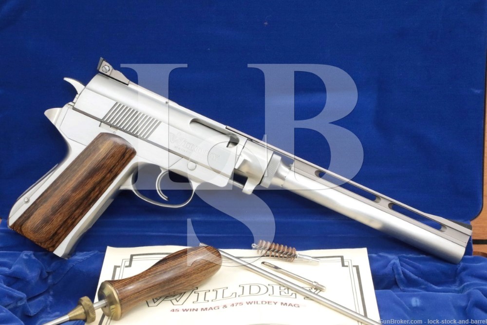 Our Assessment: Colt’s 1911 served the United States military through two World Wars and several other conflicts, is still in use by some units today, and has become popular with law enforcement, competitors, and recreational shooters across the nation. The design has seen some updates including a firing-pin block safety, higher profile sights, and more ergonomic grips, but the basic design and fantastic trigger remain the same after more than a century. This example is a Government Model Series 80 Enhanced variant with beavertail grip safety, under-cut trigger guard, skeletonized hammer and wraparound checkered rubber grip. It is a beautiful example with a factory Brite Stainless finish. The pistol is in Excellent condition with the only notable wear appearing to be from storage in the included original box. It should make a great shooter, but its high condition will also make it a great addition to your collection. Please see our photos and good luck!